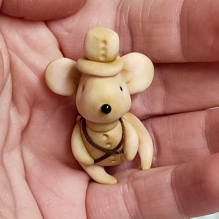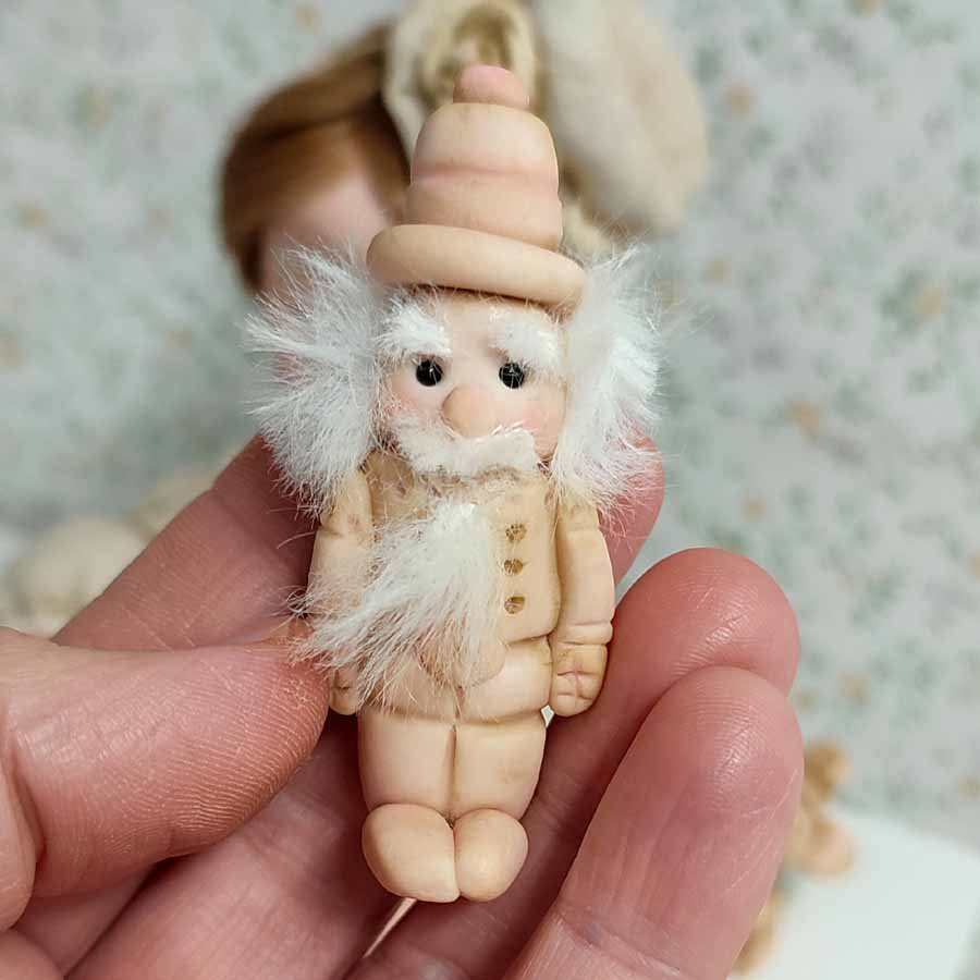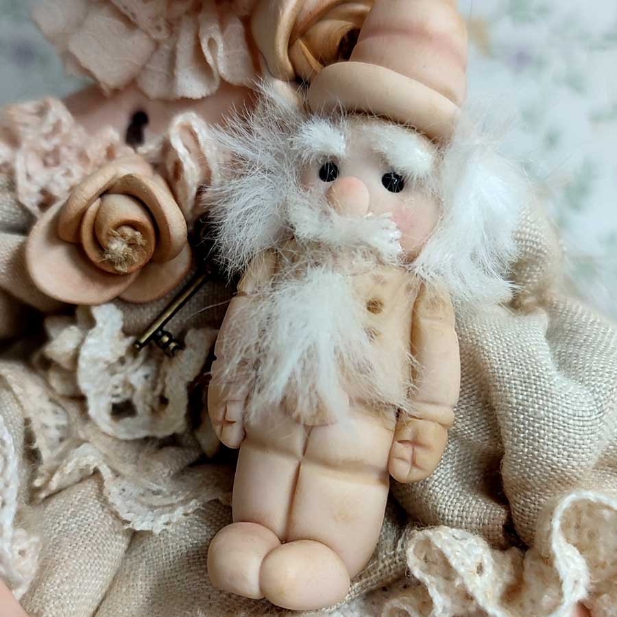 Es una pieza única y está hecha con arcilla polimérica y tela de lino. Incluye una pequeña figura del cascanueces, un ratoncito y una galletita de arcilla.