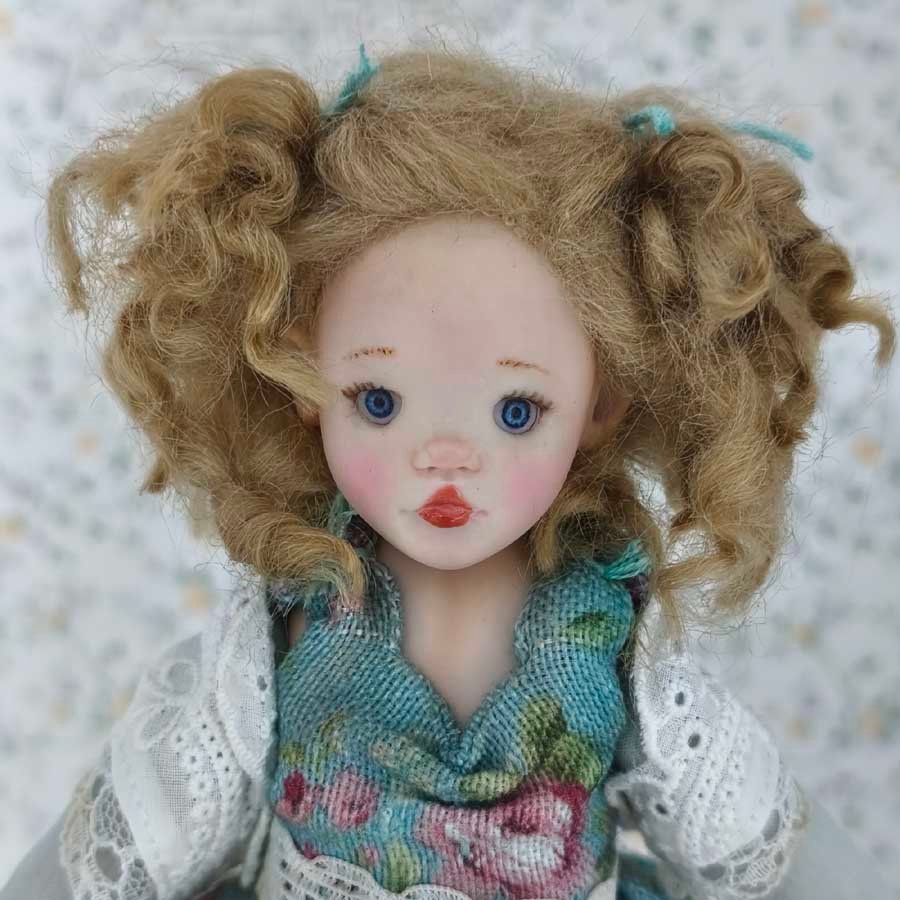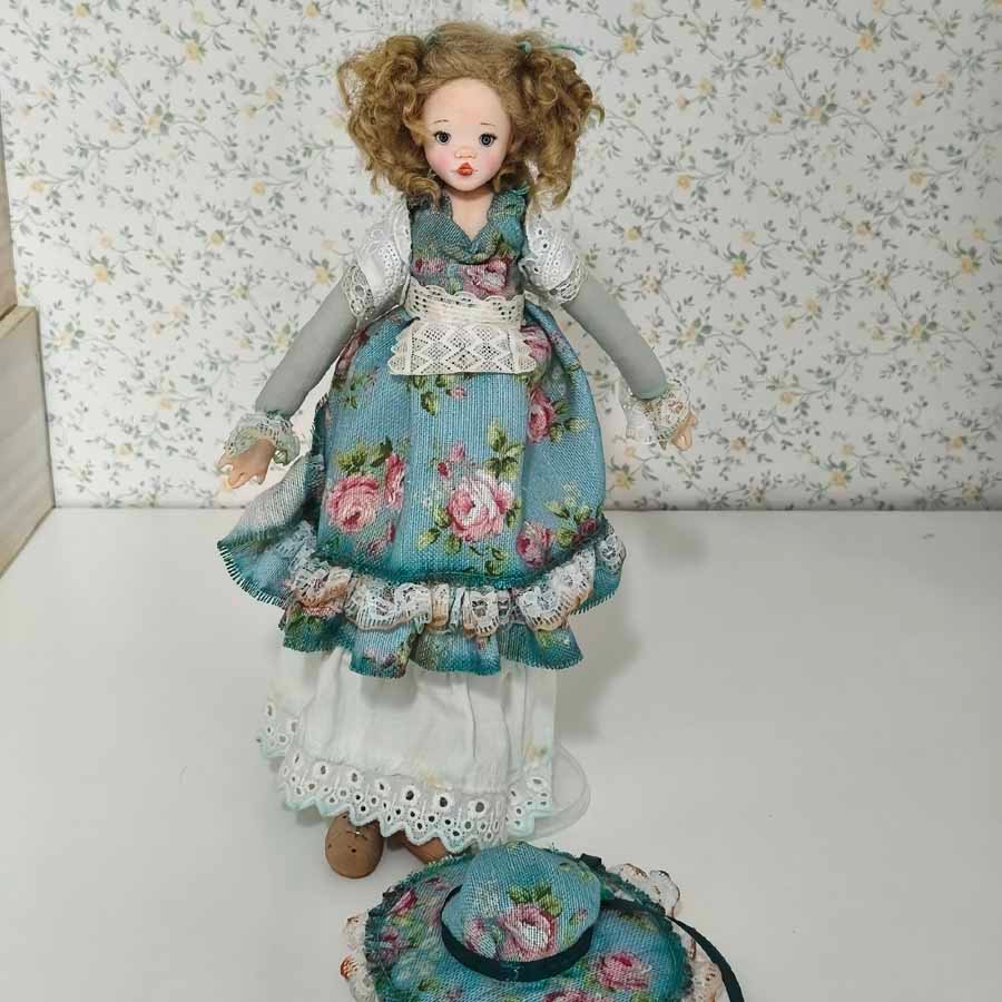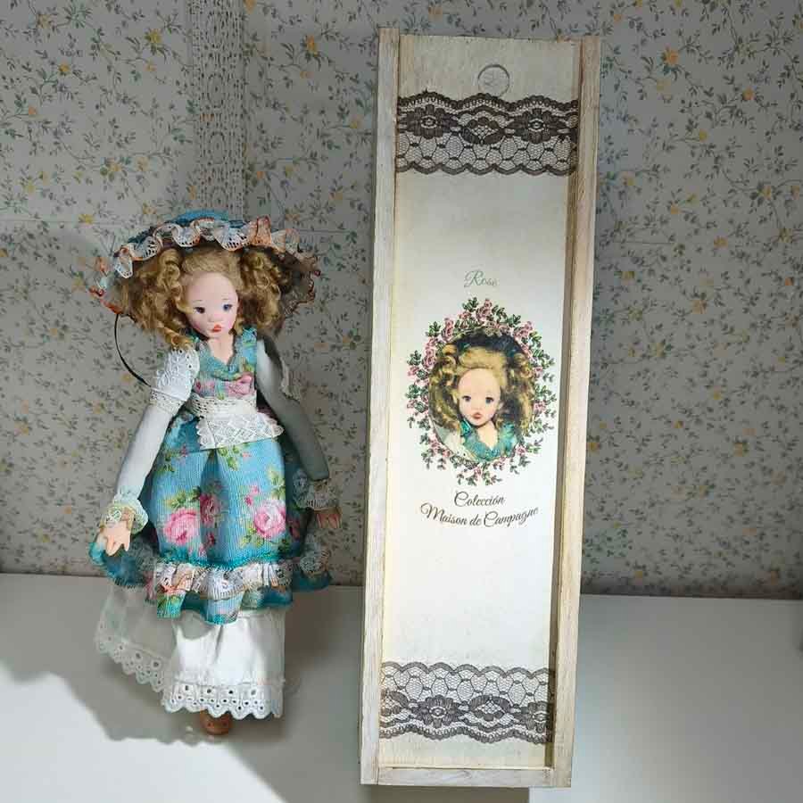 Esta muñeca con Vestido Azul Floral se llama Rose 01/05 y pertenece a la colección Maison de Campagne.