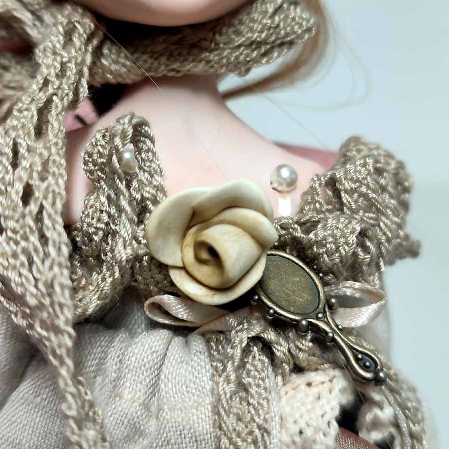 Es una pieza única y está hecha con arcilla polimérica y telas de calidad.