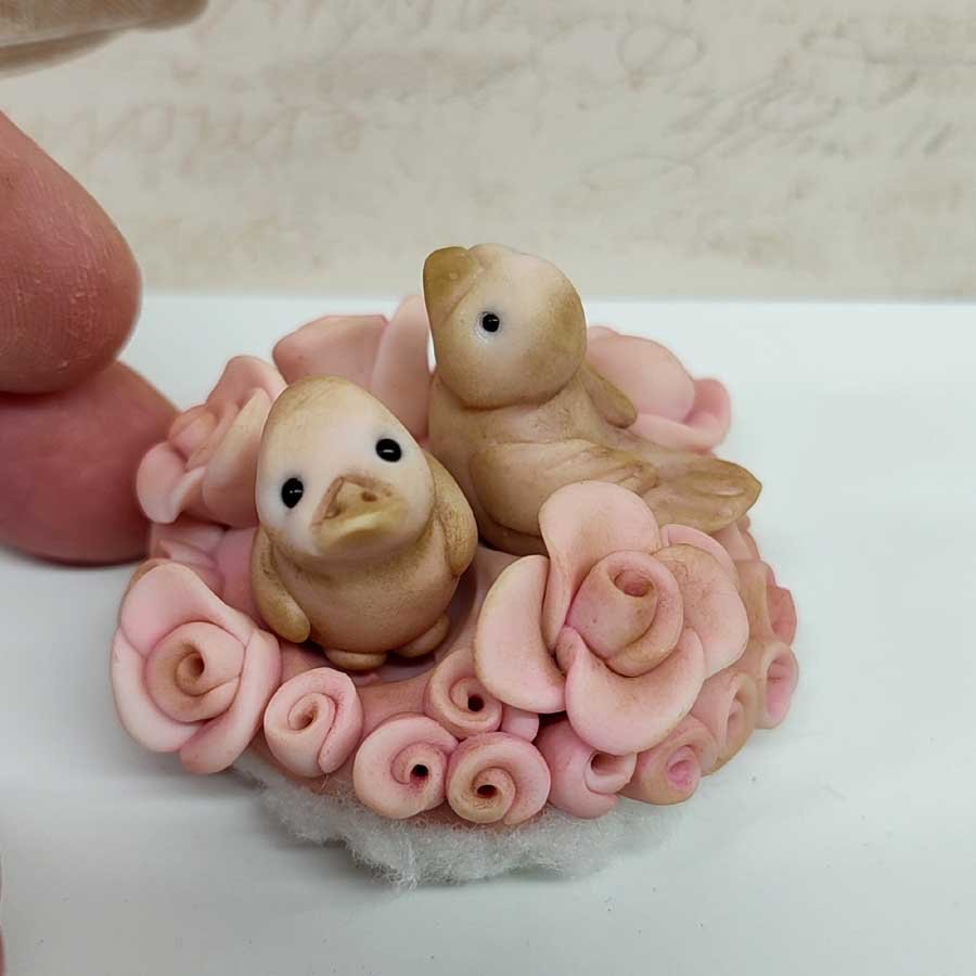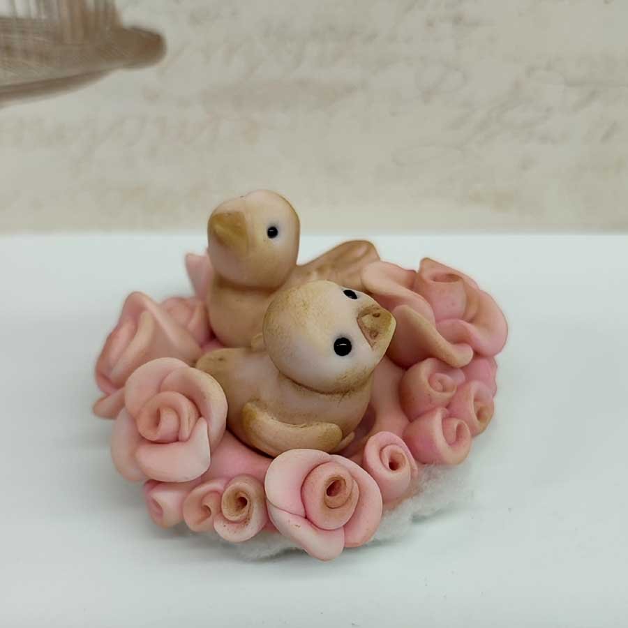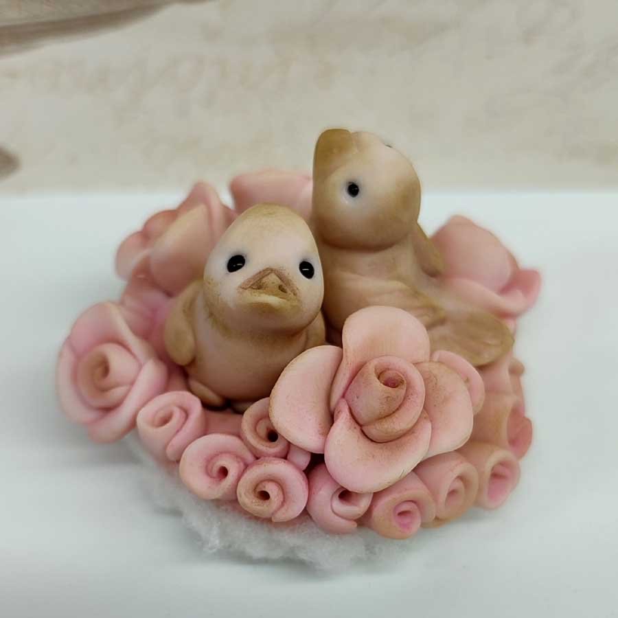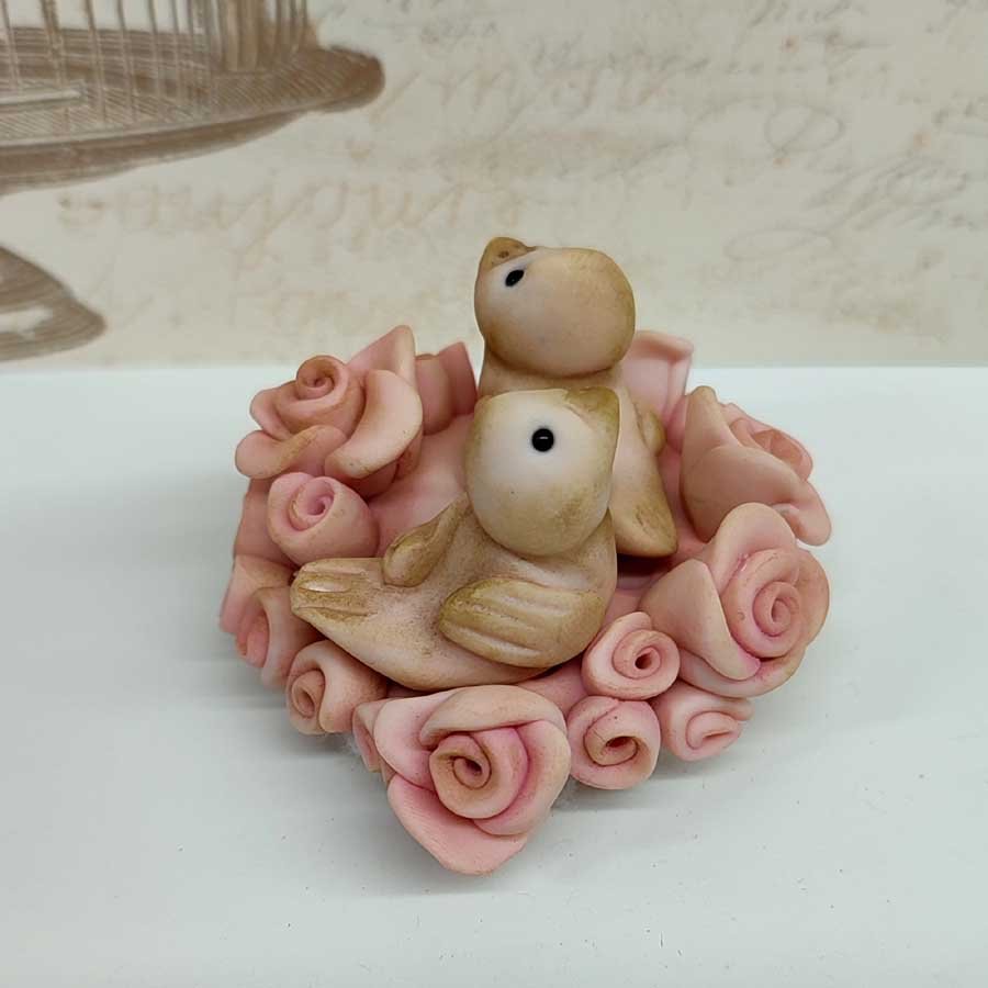 Estos pajaritos de arcilla polimérica, incluyen una base con flores ideales para decorar tu hogar.